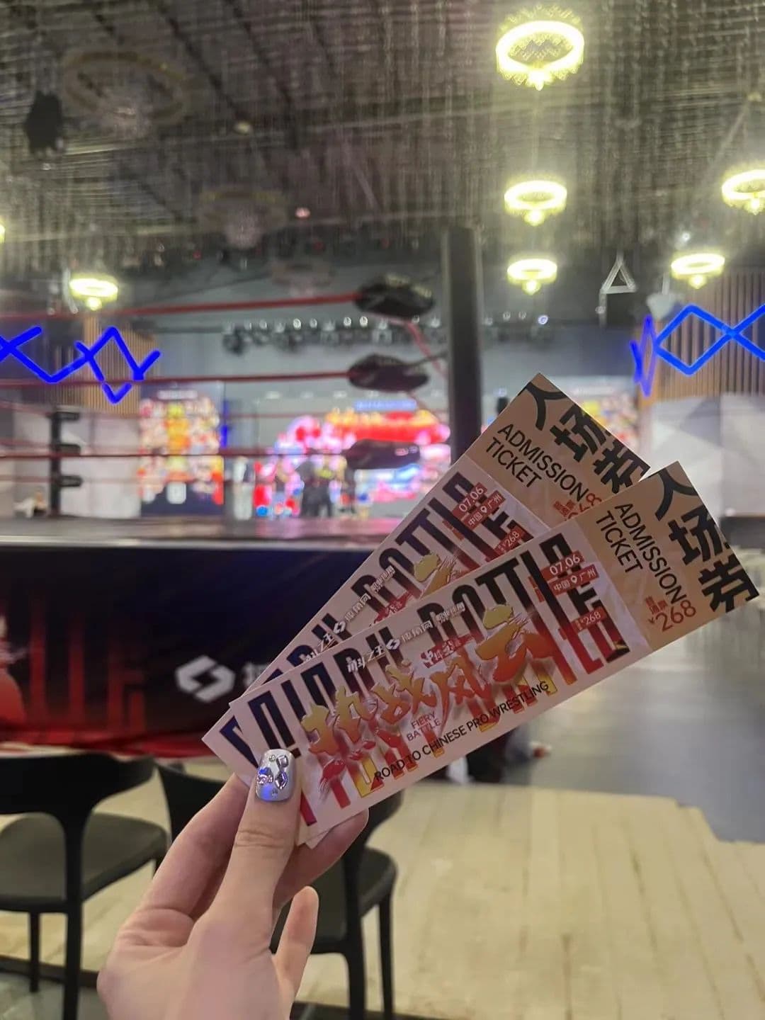 如今,早茶WWE正成为新的商业样板,有诸多商场、餐厅和酒吧负责人找到摔角团队,探索WWE➕行业融合的可能性。比如,今年1月19日,角斗之王和广州岭南会展中心合作举办的「角斗茶摔」,10人桌定价1988~2388,人均200上下。