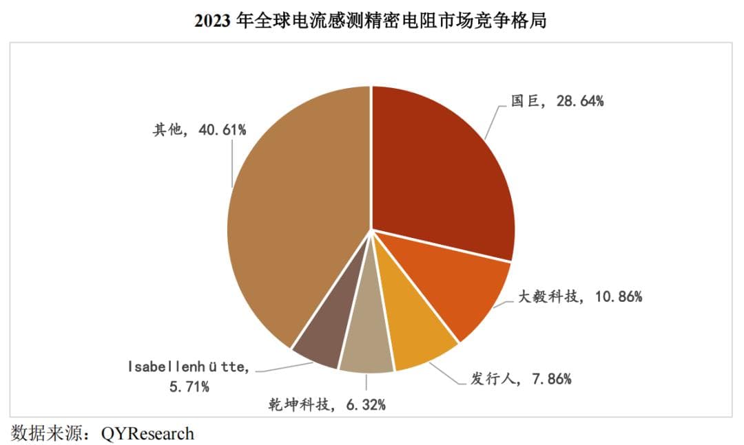 而钧崴电子的核心产品之一,是电流感测精密电阻。2023年,它是全球第三大电流感测精密电阻企业。听着好像还挺牛的,但前面还有两个“大佬”国巨、大毅科技压着,两家合计占据近40%的市场份额,行业竞争也是相当激烈。