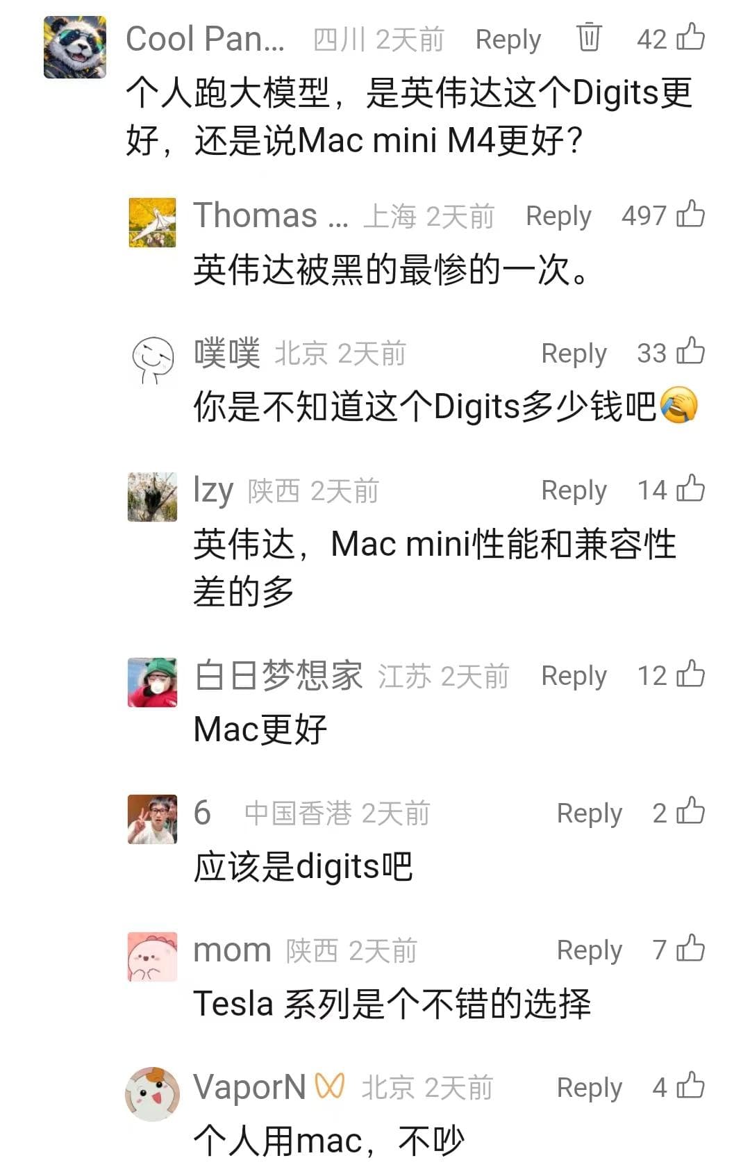 前些天,英伟达发布了一大堆东西,其中包括一款 AI 超级计算机 Project DIGITS,机器之心也在第一时间进行了报道,参阅《RTX5090 震撼发布,国行 16499 元起,黄仁勋「美国队长」pose 亮翻全场 》。在这篇文章的评论区,一位读者的问题引发了不少争议。