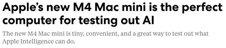 Fast Company 甚至认为 M4 Mac Mini 是「测试 AI 的完美计算机」。