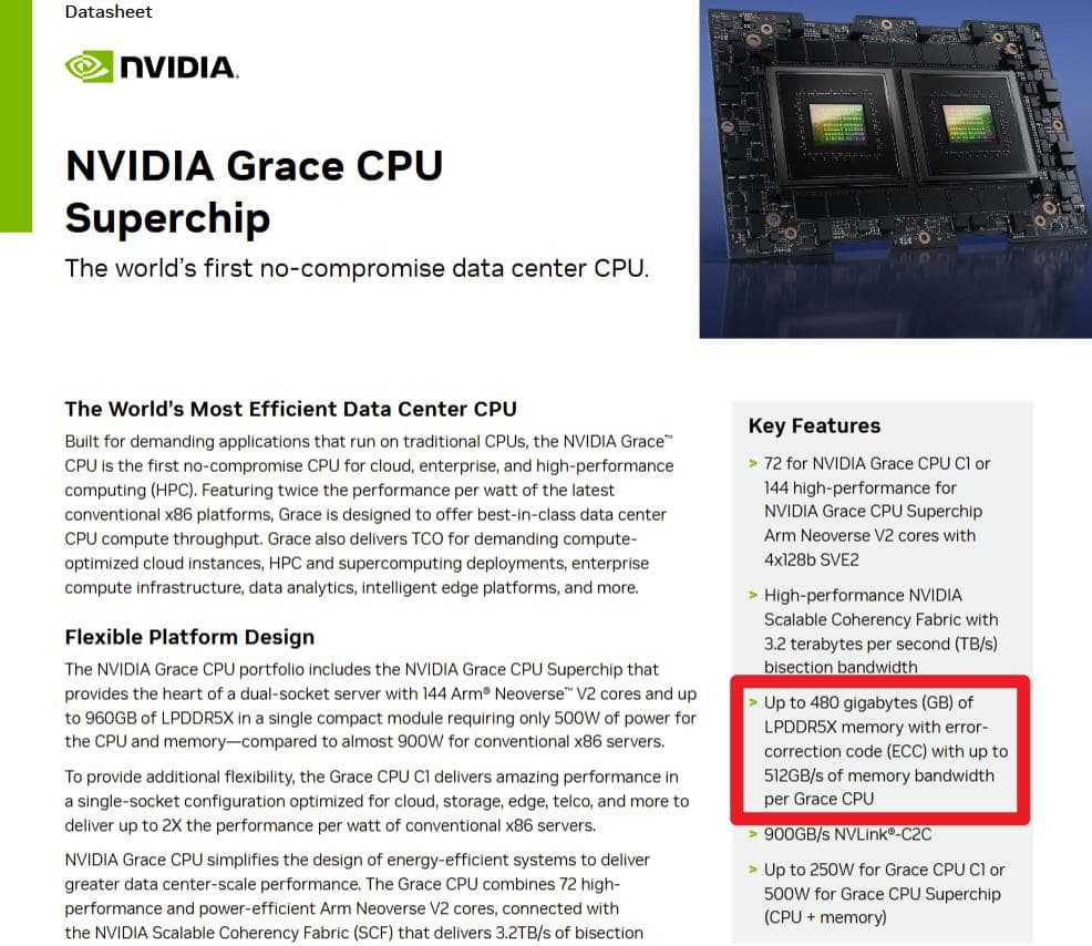 虽然该设备的内存有 128 GB,「但是根据 Grace 架构 CPU 的 Product Brief,单 CPU 的内存带宽最大只有 512GB/s。所以如果用这个设备来运行大语言模型,瓶颈就会变成这个内存带宽。」
