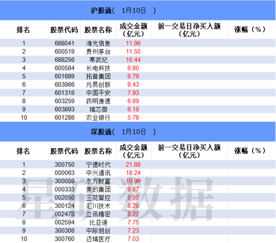 一、沪深股通前十大成交