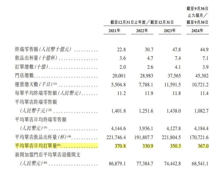 按照招股书上来看,截至2024年前三季度,蜜雪冰城平均单店日均能收到367个订单、卖出662杯,而古茗平均单店日均订单数仅为234单、卖出386杯。