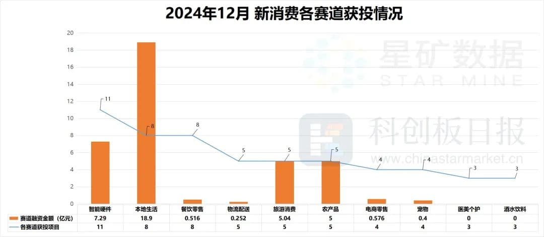 值得的注意的是,本地生活领域重新回到市场关注视野,成为12月融资金额最高的赛道,共有8个项目获投,融资金额达到18.9亿元。