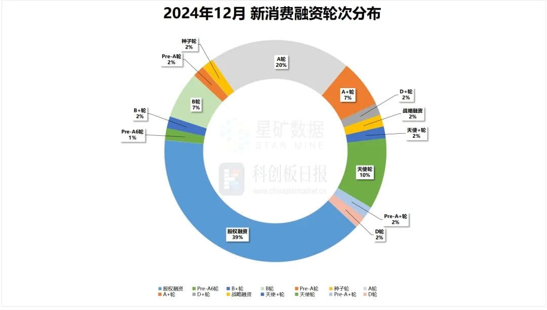 投资轮次上,12月包含并购、收购等情况的股权投资、战略投资事件增多,达到了投融资总数的41%。此外,消费融资市场上投早、投小比例仍然不少,天使轮投资、A轮投资分别占总数的10%、20%,且大量早期投融资发生在智能硬件赛道。