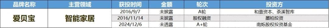 据悉,12月初爱贝宝完成A+轮融资,由南烁股权投资基金独家投资。此前,爱贝宝已于2016年9月、11月完成A轮和股权融资,分别由和壹资本、茶溪智库及墨柏投资参与。
