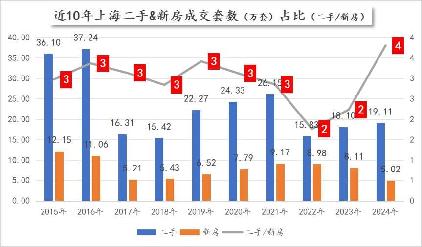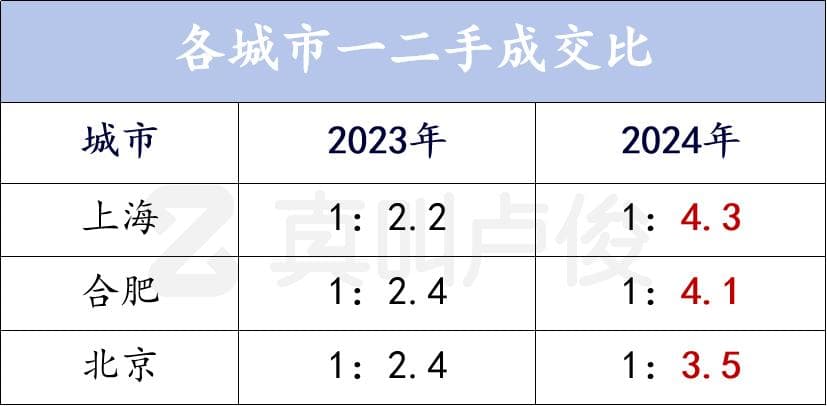 包括根据巧克丽丽同学的数据,哪怕上海这个二手主导的存量市场,往年一二手成交比最多只有1:3,去年也来到1:4了。