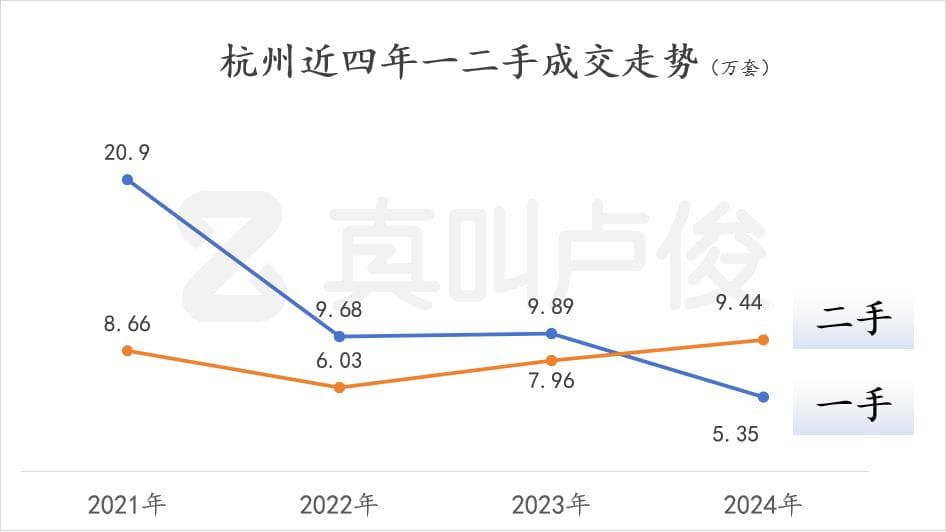 其次是杭州,没长沙那么高,但去年一二手比例也来到了1:1.8。