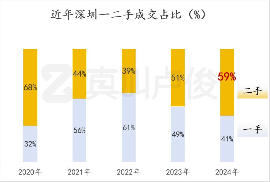 不过深圳虽然 2023年一二手成交也来到五五分的状态,却不是第一次了。