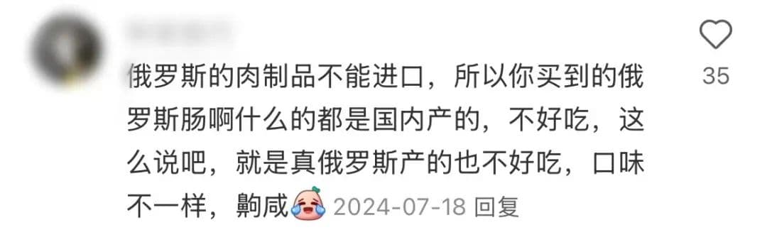 她细数这些商品的问题:包装做得很“俄”,但并不是俄罗斯品牌;很多所谓的正宗蜂蜜、大列巴在俄罗斯本土根本买不到,更别提那些口味奇怪的“俄式香肠”。