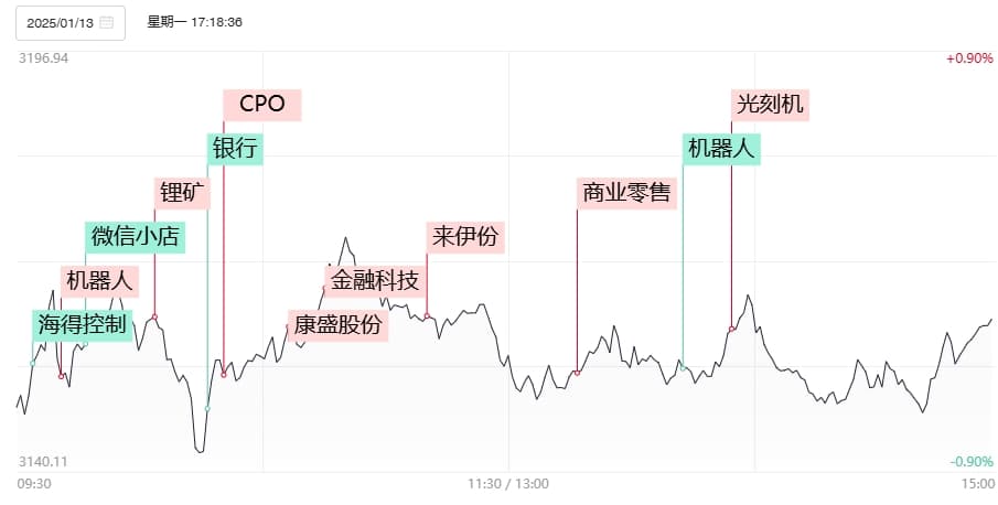日前Marvell(美满科技)宣布,推出采用共封装光学器件(CPO)技术的定制 XPU 架构。2025年开年,CPO(光电共封装)技术及其解决方案成为资本市场关注热点之一。受益800G和1.6T速率端口的CPO产品放量,长光华芯、跃岭股份、源杰科技等光芯片方向展开不俗的修复行情。尽管对于英伟达GB300等新款服务器中光模块、铜缆以及PCB的价值量和增量变动仍争议不断,但整个高增长的趋势却是确定无疑,因此长期而言光模块等核心器件的预期炒作仍难言就此告终。因此国产算力芯片龙头寒武纪在午后一度跌超8%后持续收窄跌幅。而光刻机产业链午后的强势拉升,除去受益国内半导体加速扩产外,其总体的超跌状态也容易成为活跃资金抢先手的主要出击方向。