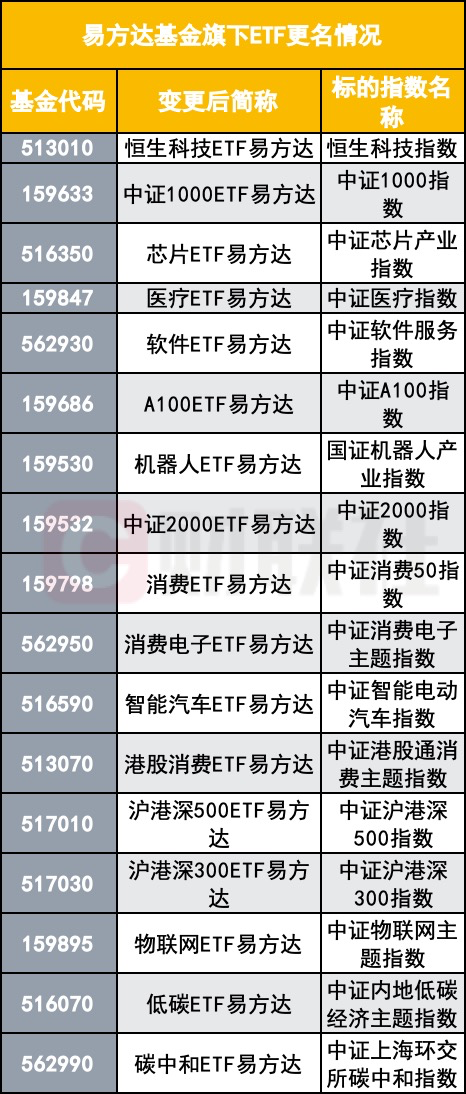 是谁家的ETF一眼就认出!易方达率先出手,17只ETF集体改名了