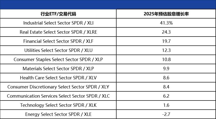 预计2025年标普500指数11个行业中的大多数将实现稳健的股息增长,这在一定程度上要归功于更好的盈利增长。