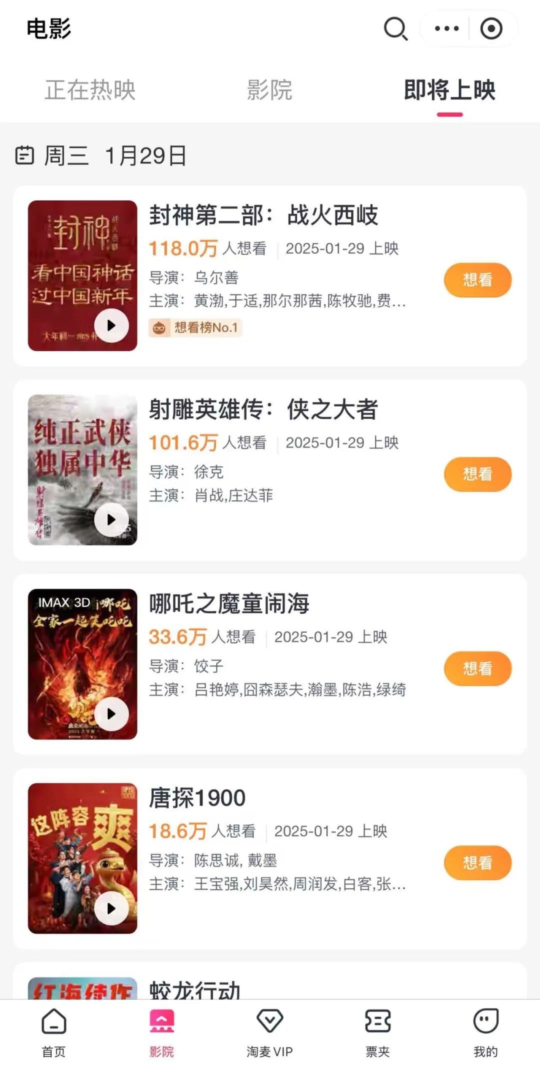《封神第二部:战火西岐》和《射雕英雄传:侠之大者》片名字数一样,在读娱看来也是相互竞争较为激烈的一对。都是知名IP古装类型,都有当下顶流流量明星出演,比如目前淘票票想看人数《封神第二部:战火西岐》118万,《射雕英雄传:侠之大者》101.6万,这个数字几乎是第三名的四倍,但要说这两部电影的票房潜力遥遥领先,显然又是不太合理的。