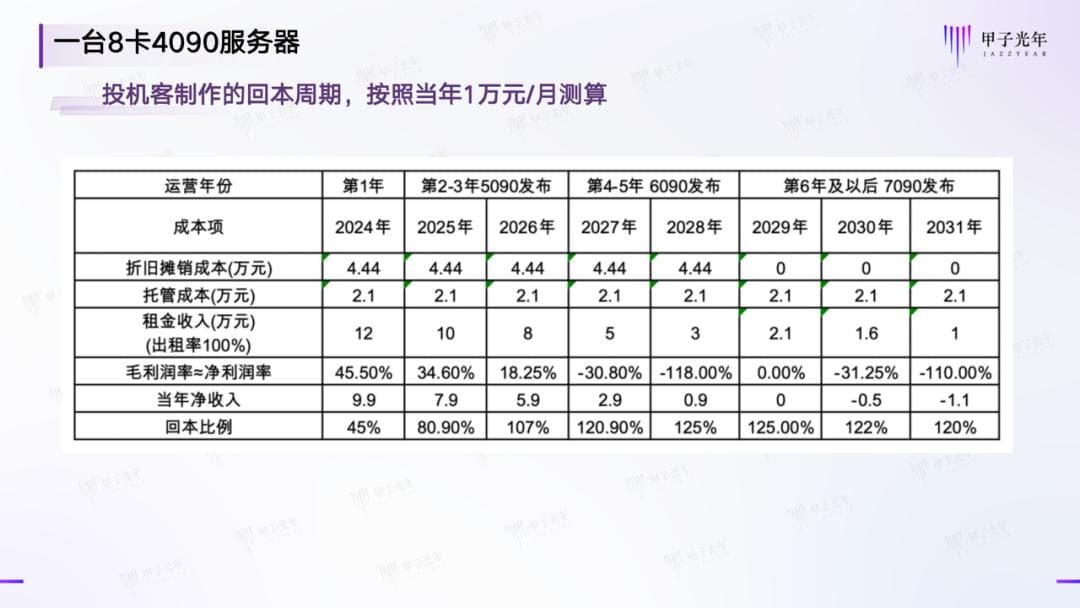 一台8卡4090服务器真实的回本周期 数据来源:受访者,制图:甲子光年