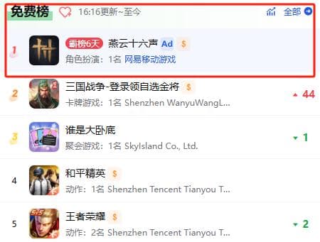 1月7日下午16点,预下载正式开启,当天便在iOS端斩获22.3万,次日(1月8日)的日下载略微增长至22.5万,凭借如此成绩,游戏一举拿下iOS免费榜总榜第一,并在该位置持续霸榜5天,目前滑落至免费总榜第二,但依然位于iOS游戏免费榜TOP1。