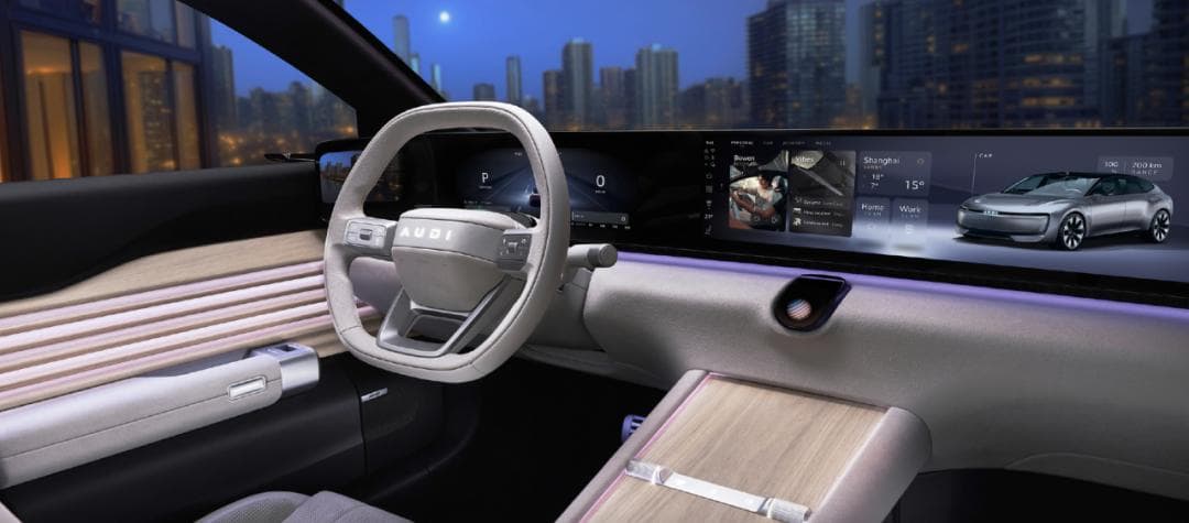 这款概念车配备了大尺寸的双联屏、全新样式的方向盘,配置上还会搭载AUDI OS车机系统、AI大模型、智能应用生态等。新车头顶将带有一颗激光雷达,以便未来支持城区和高速的NOA功能。