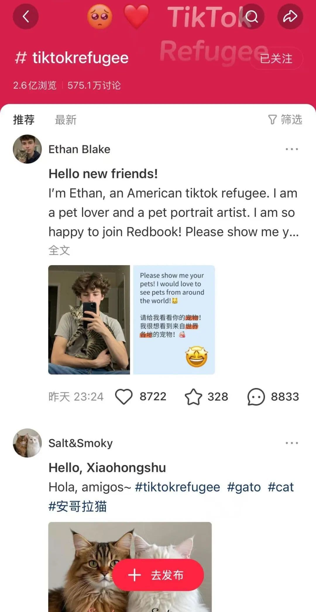 随着TikTok“不卖就禁”的禁令靴子或即将落下,出于抗议或不满情绪,这群寻找新阵地的海外用户在小红书掀起了一场“TikTok难民”浪潮。
