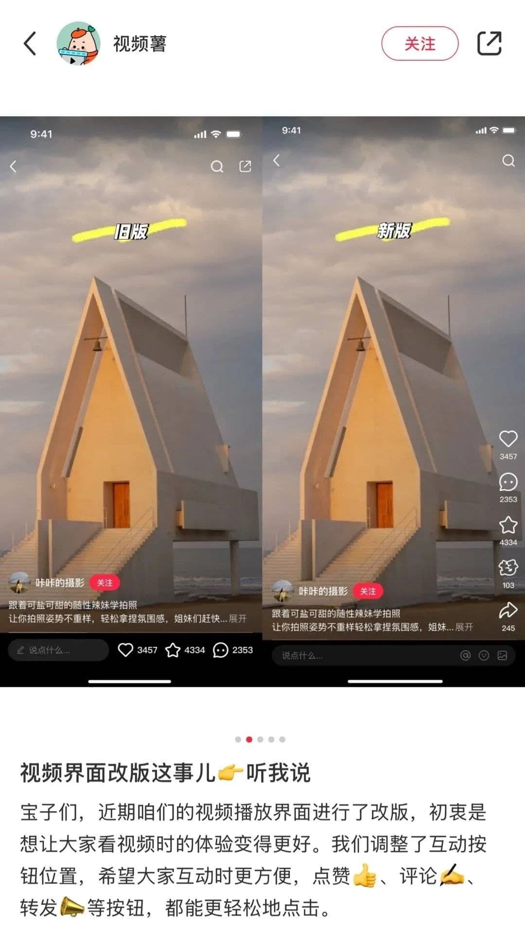 今年1月,小红书对视频播放界面进行了改版,将原本位于视频内容底部的互动按钮调整至右侧,在“热门”入口上也采用了单列信息流的形式,用户可以上下滑动切换视频,这些改动都让小红书在视频内容呈现上变得越来越像TikTok。
