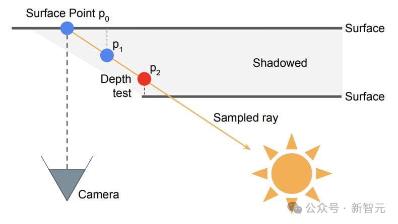 作者从实时图形学中汲取灵感,将可见度测试建模为一种屏幕空间方法。图4是该测试的示意图。