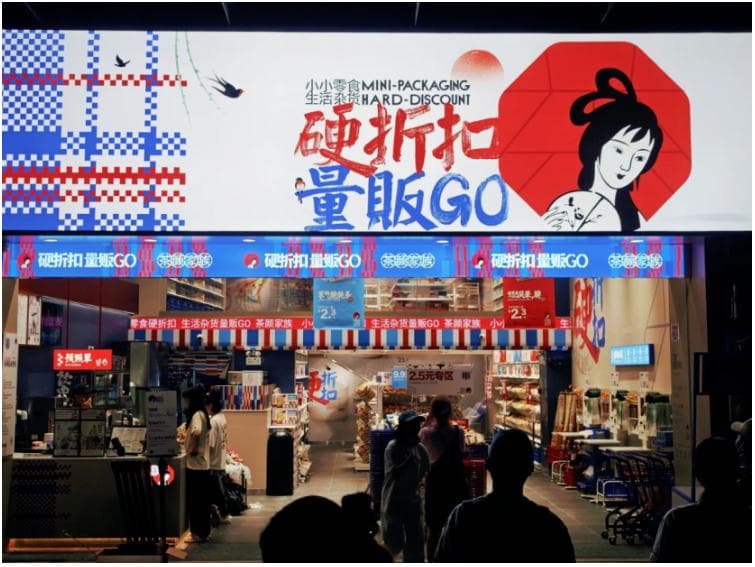 而在2024年8月底,茶颜悦色推出旗下首家“硬折扣量贩GO”主题概念店——零食生活杂货店。据官方介绍,该门店位于长沙,占地200余平方米,一楼以零食和茶叶为主,二楼则聚焦生活杂货及零售周边。门店旨在为消费者打造兼具“零食+生活”特色的购物体验。