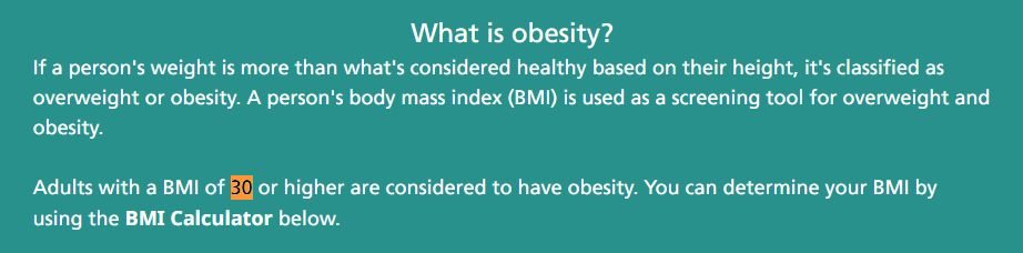 目前,诊断肥胖(obesity)的方法主要依赖于BMI(身体质量指数)——以公斤为单位的体重,除以以米为单位的身高的平方所得的数值,30或以上都被视为肥胖,无论身体结构或总体健康状况如何。