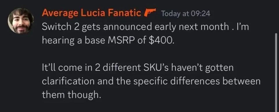 有爆料者推测,在Switch 2正式亮相后,可能会在今年5月或者6月上市。传言显示,这款游戏机的上市价格或达到400美元,相比现款机型上涨100美元,而同样搭载的游戏卡带也一并会涨至70美元。