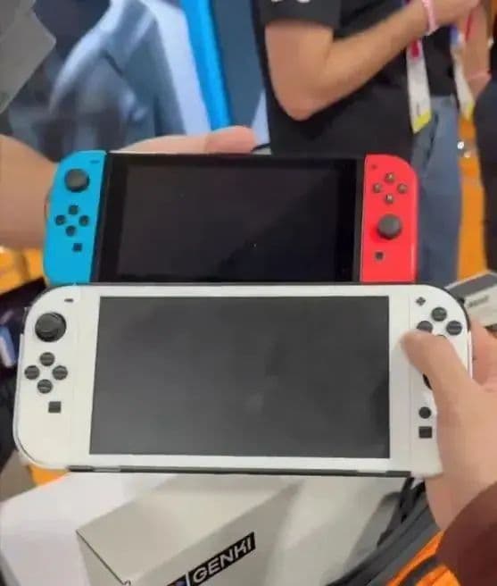 特别是一家Genki厂商掏出了一台Switch 2模型机进行对比,机身全方位展露无遗,包括正面按键布局,屏幕占比以及背后按键细节等都非常真实。肉眼可见,所谓的“Switch 2”确实要大上许多,这也再次证实了之前关于新Switch有8英寸的这一说法。