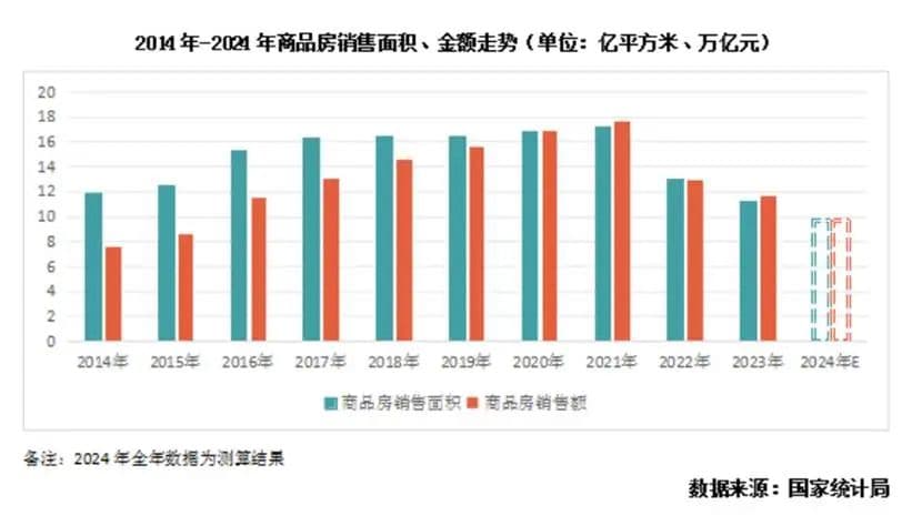 图:2014-2024商品房销售面积、金额走势,来源:中房网