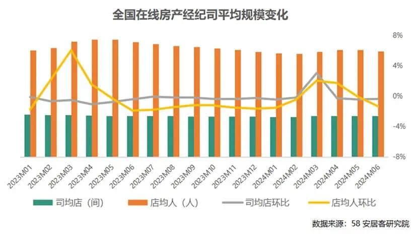 图:全国在线房产经纪司平均规模变化,来源:安居客研究院