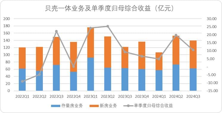 图:贝壳“一体”业务收入及归母综合收益,来源:企业财报,锦缎整理