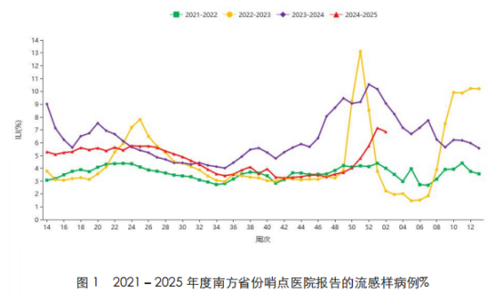 今日国家疾控中心发布的最新一期《流感监测周报》,数据显示,2025年第2周南方省份流感病毒检测阳性率上升趋缓,北方省份流感病毒检测阳性率下降。南方省份哨点医院报告的 ILI%为 6.9%,低于前一周水平(7.1%),北方省份哨点医院报告的 ILI%为 6.2%,低于前一周水平(7.5%),均已开始回落,今年冬季该数值峰值低于过去两年。