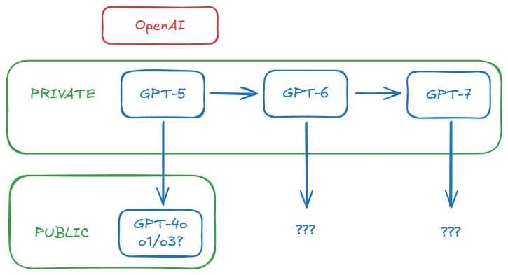 文章接近尾声了。我相信我已经列出了足够的论据来建立一个坚实的案例:OpenAI 很可能在内部拥有正在运行的 GPT-5,就像 Anthropic 拥有 Opus 3.5 一样。OpenAI 永远不会发布 GPT-5 也是有可能的。公众现在将性能与 o1/o3 进行对比,而不仅仅是 GPT-4o 或 Claude Sonnet 3.6。随着 OpenAI 探索测试时 scaling law,GPT-5 需要跨越的门槛不断提高。他们如何能发布一个真正超越 o1、o3 和即将到来的 o 系列模型的 GPT-5 呢,特别是考虑到他们生产这些模型的速度?此外,他们不再需要我们的钱或数据了。