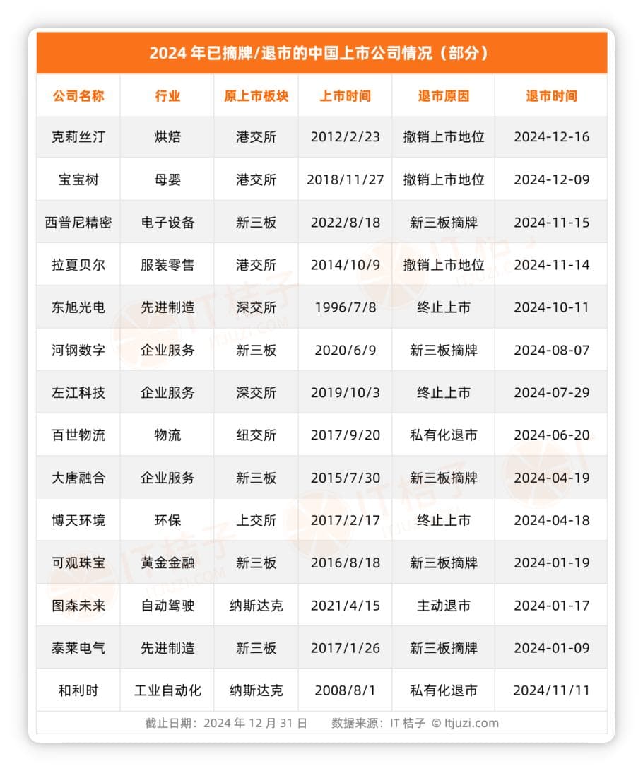 尤其值得注意的是,像“自动驾驶第一股”“烘焙第一股”“女装第一股”等几家知名的公司在2024年也退市了。