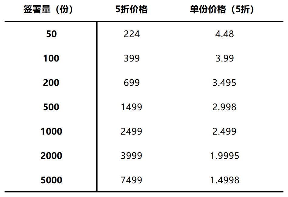 年底促销时,E签宝以8折优惠提供服务,单份合同的价格约为7.84元。但客户仍普遍认为价格偏高,SaaS渠道中间商报价,直接低至6元/份。这位客户选择与法大大合作,客户称,法大大的代理商能够以5折优惠价合作,即每份合同仅需3.99元,而其服务质量与E签宝相差无几。在没有其他影响因素的情况下,客户自然倾向于选择价格更低的平台。
