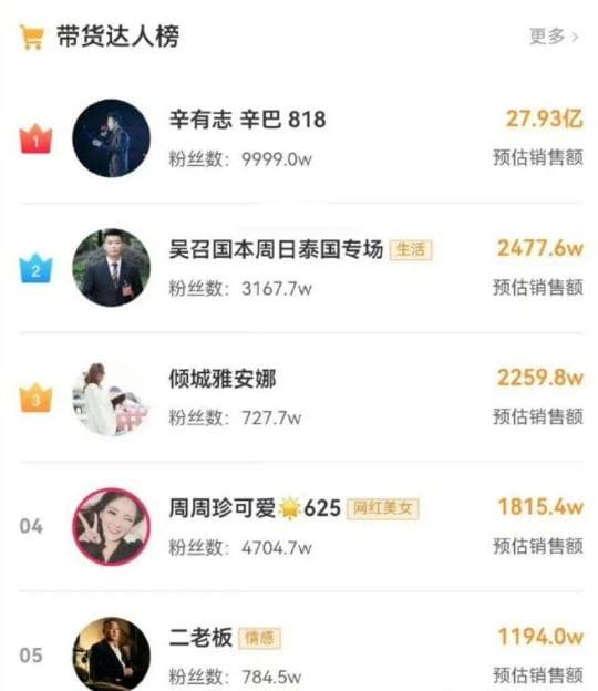 说明这些辛选打造的这几个超级主播,不过是针对用户的不同需求,给辛巴又添了几个分身。这也就解释了,哪怕辛巴时常被封禁不露面,粉丝依然对他抱有极强的忠诚度。