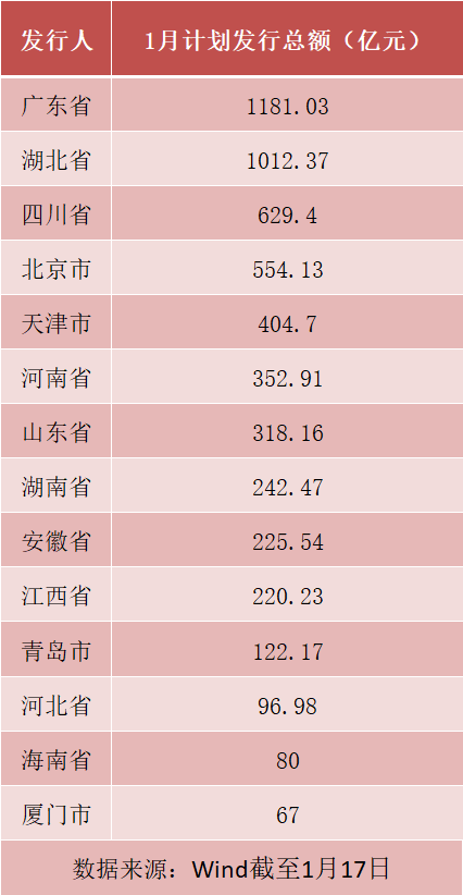 1月13日,湖北和青岛分别发行了约639.37亿元和39.17亿元地方政府债券,今年地方政府债券发行序幕正式开启。1月14日,湖北再次发行了373亿元的地方政府债券。