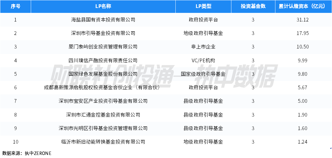 财联社创投通—执中数据显示,12月活跃机构LP包括海盐县国有资本投资有限公司、成都高新策源启航股权投资基金等政府投资平台,国家绿色发展基金、深圳市引导基金、临沂市新旧动能转换基金、深圳市宝安区产业投资引导基金等各级政府引导基金,厦门象屿创业投资管理有限公司等非上市企业等。