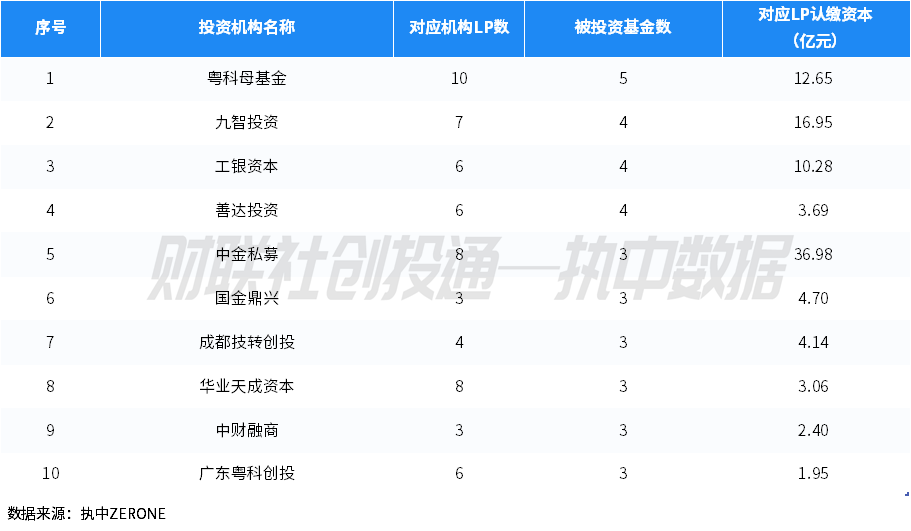 12月受LP青睐的投资机构TOP10如下表所示(按期内对应被投基金数统计,被投基金数相同的以对应LP认缴资本排序):