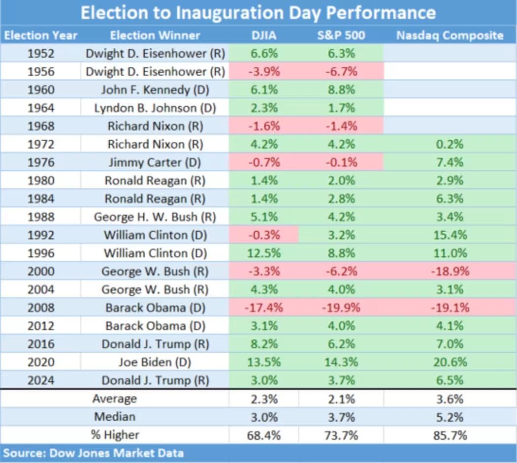 总统大选日到就职日期间美股表现如何?