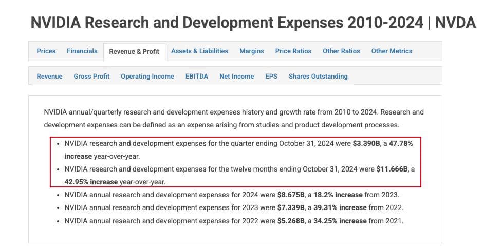 AMD与英伟达在研发投入上的差距更揭示了两者的竞争格局。