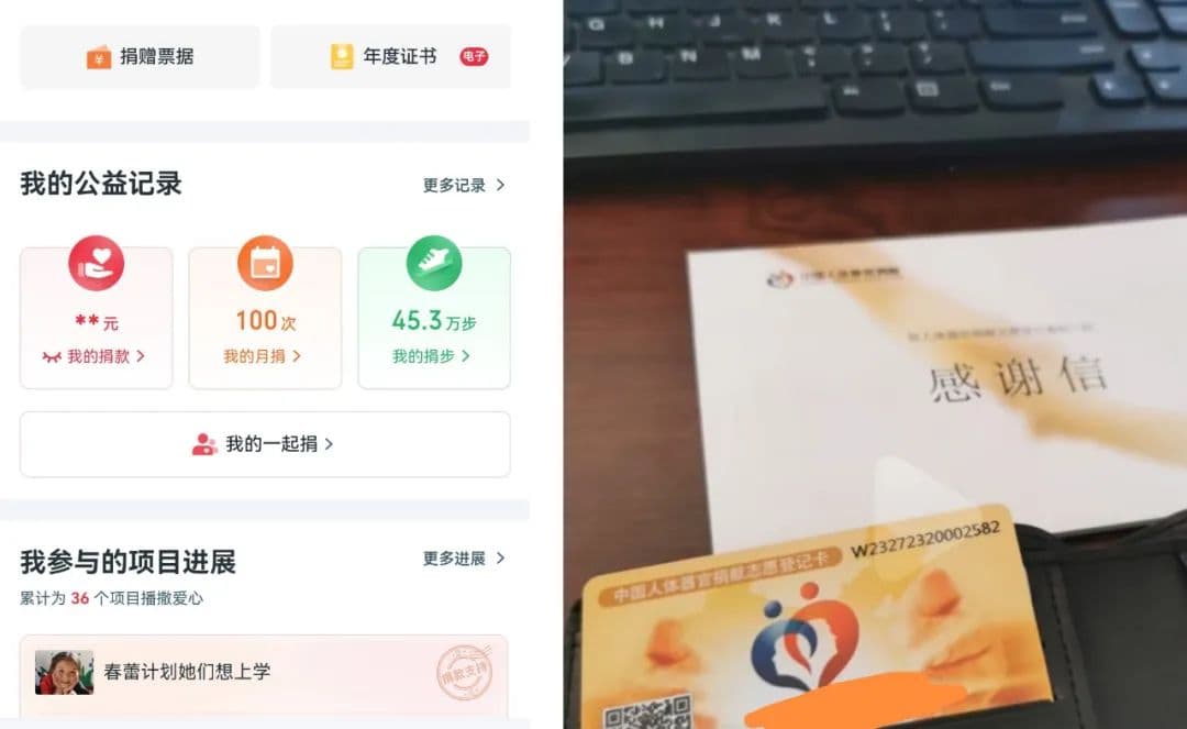 因为受到质疑,于洋不得不晒出了自己的公益记录和器官捐献证明