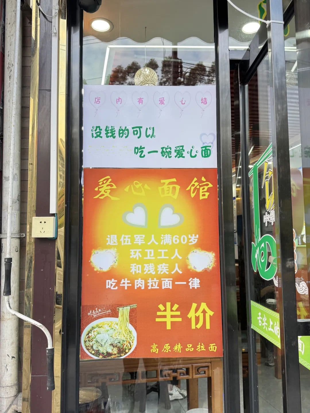 餐厅的免费用餐告示往往是这么写的: “如果您最近遇到困难没有收入, 告诉店员来份‘爱心餐’, 吃完直接走就好,不必客气! 只希望将来在您有能力的日子里, 帮助一下身边需要帮助的人。”