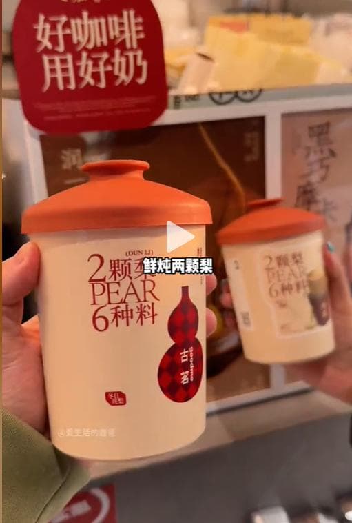 其实是古茗最近推出的新品系列, “ 鲜炖两颗梨 ” 。