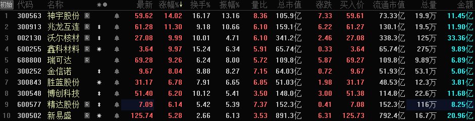 《科创板日报》1月20日讯(编辑 宋子乔) 1月20日,A股铜缆高速连接概念股开盘大涨。华脉科技竞价涨停,瑞可达涨超10%,沃尔核材、中富电路、奕东电子涨超5%,神宇股份、博创科技、显盈科技、鑫科材料等跟涨。