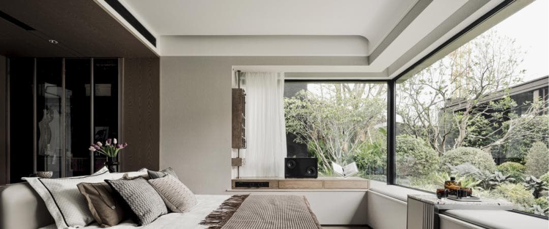 高品质居住要求对主卧空间的要求也不断升级,从满足基本的睡眠和洗漱功能,逐渐演变为一个能够提供更多场景体验的私密空间。因此,提升主卧舒适性已成为主流趋势,多采用超广角的采光与视野,满足主卧舒适性要求。比如十大标杆作品中多个产品主卧配有270°转角窗。