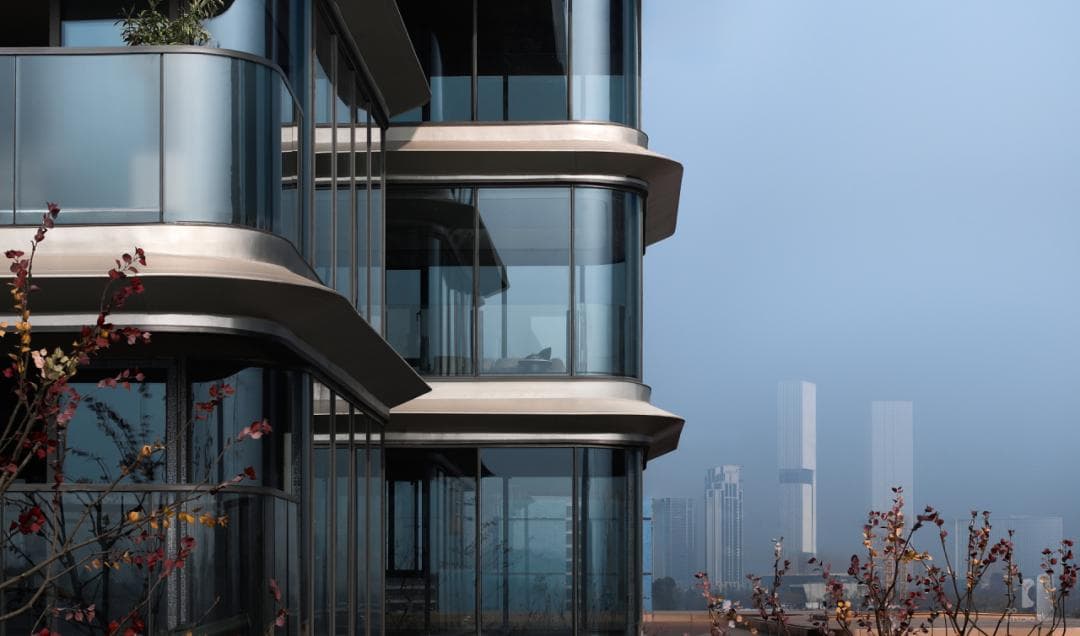 以成都邦泰·悦九章为例,项目所有户型均为全景舱户型,外墙无明显结构柱及实体墙,主卧均为270°环幕设计,三面环绕着大面积的落地玻璃窗,实现真正的环幕无界视野。