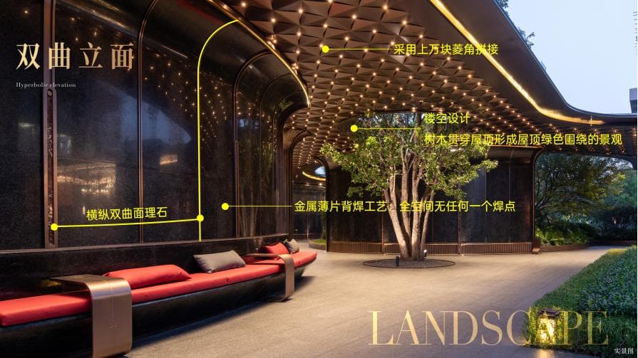 在美观度方面,沈阳新希望·D10天誉的入口处塑造双曲外立面,工艺精密,金属线条作为石材拼接处的衔接材料,顶部更有上万片菱形金属薄片,采用背焊接技术,实现了全空间无焊点。通过这种精细的工艺处理,D10天誉展现出了高标准的工艺水平和精工匠造的精神。