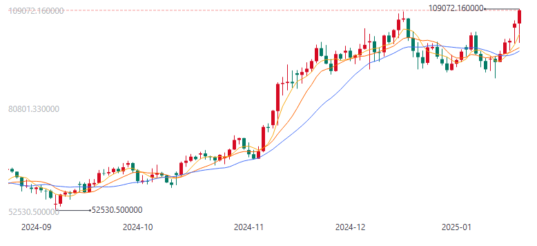 消息方面,比特币价格持续走强,今日一度上涨至109072.16美元。截至发稿,涨2.68%,报107766.37美元。