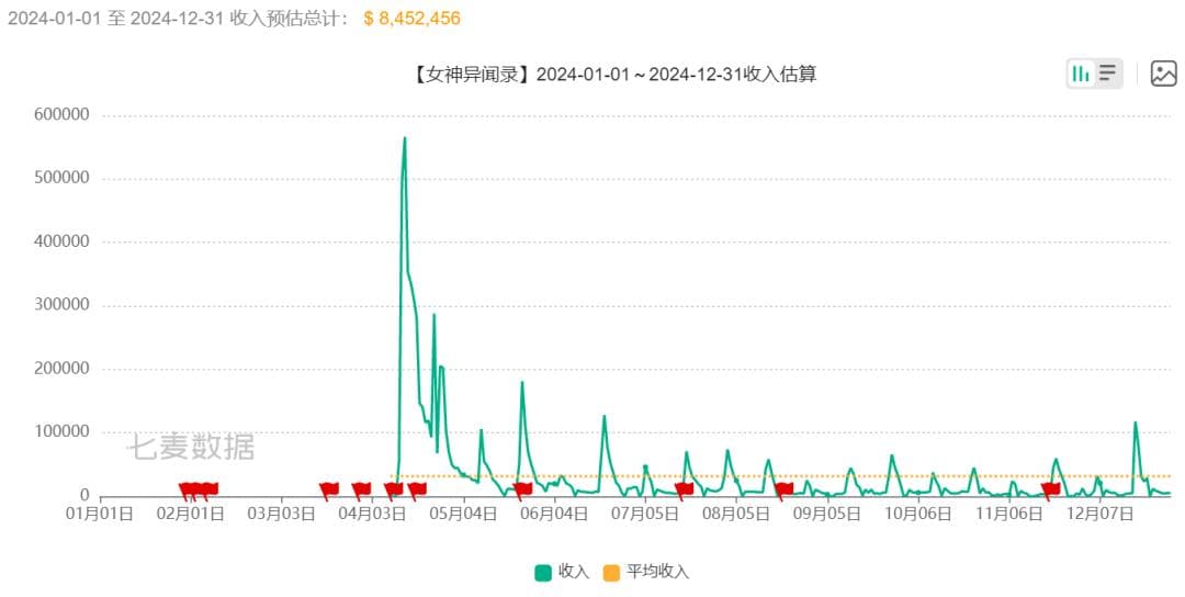 七麦数据显示,自2024年4月12日上线以来,《女神异闻录:夜幕魅影》国服iOS端收入不断走低;截至2024年12月31日,《女神异闻录:夜幕魅影》国服iOS端收入预估为845.25万美元。